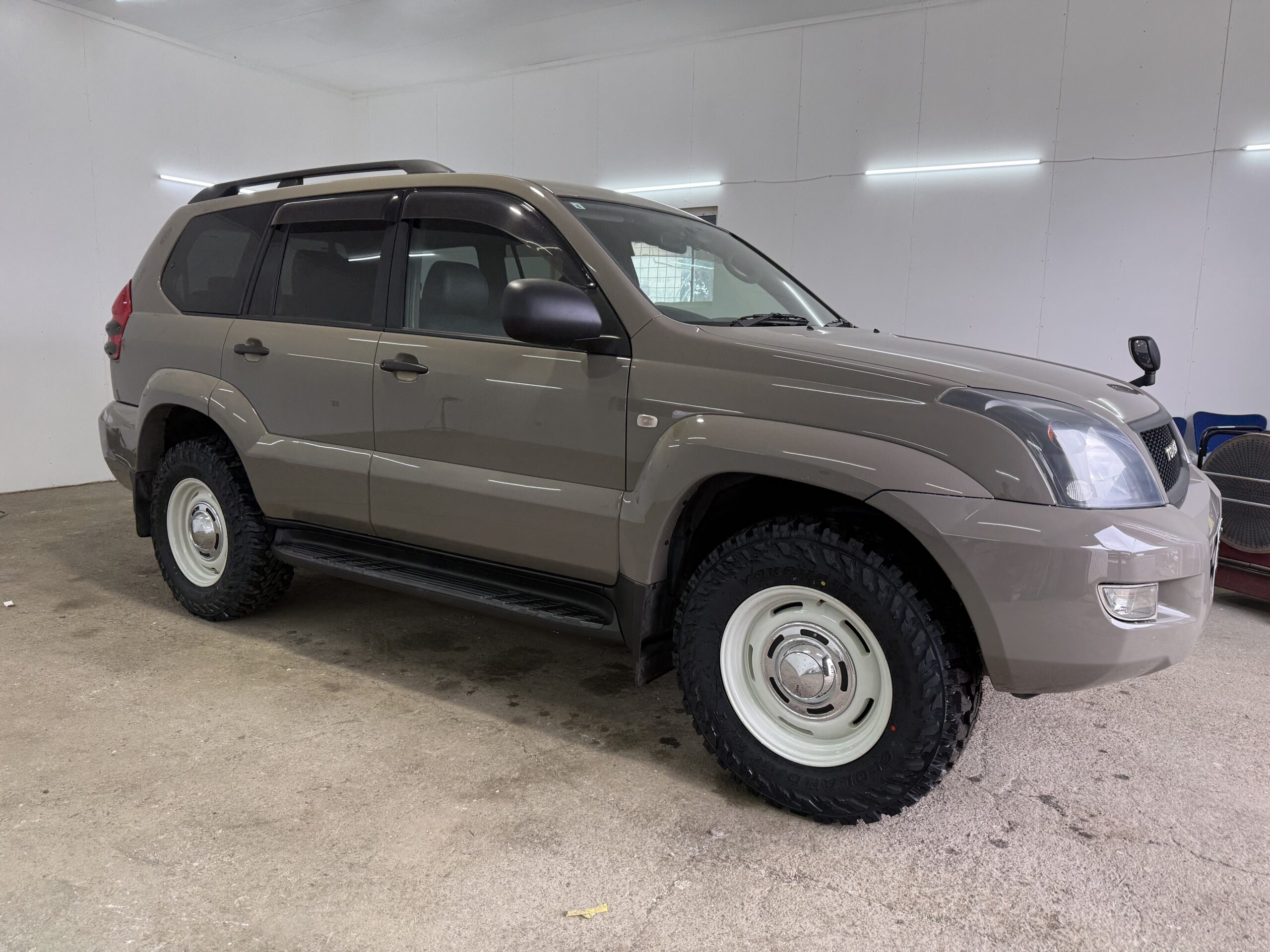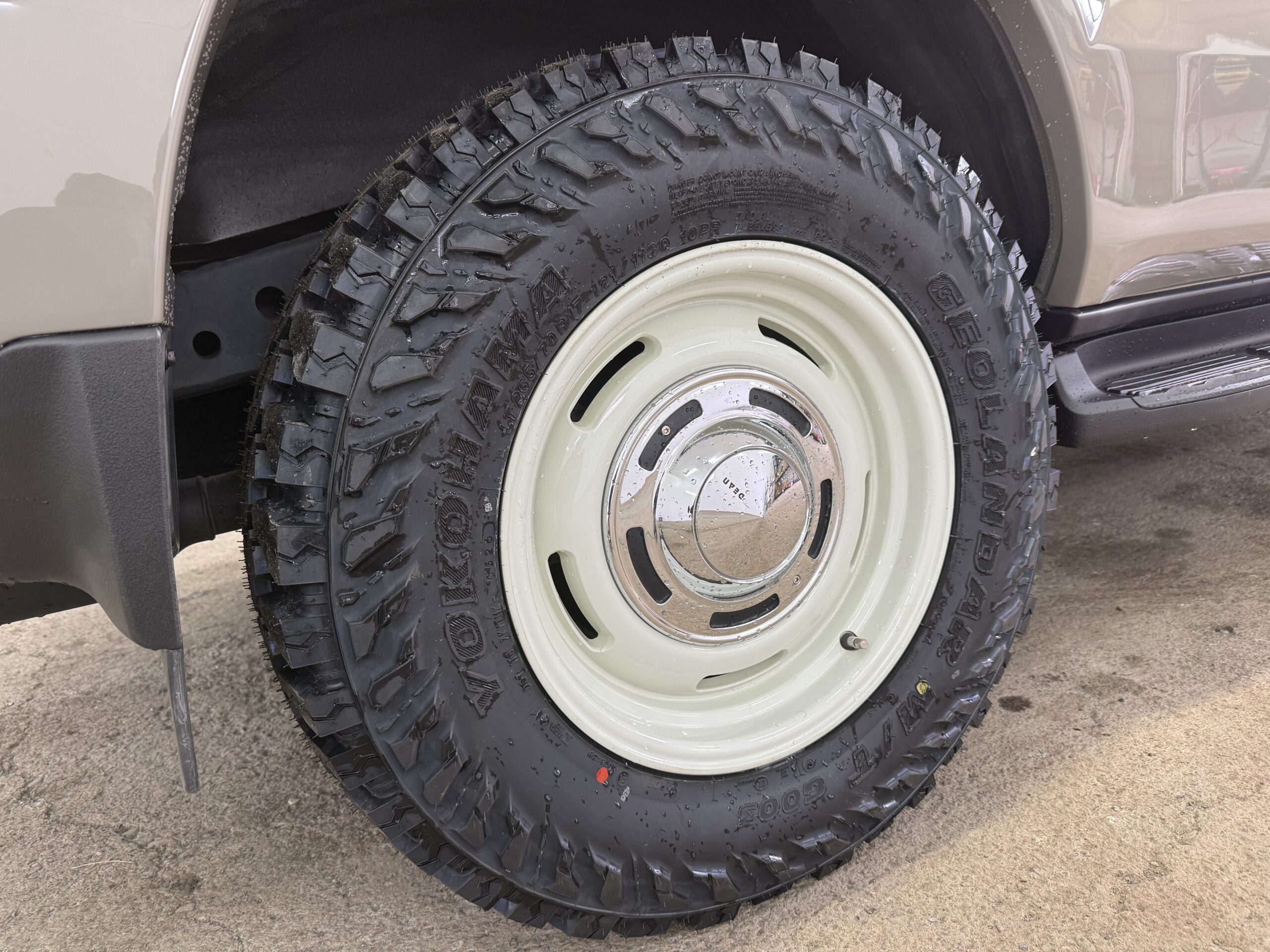 アッシュカーキのボディにDEANのホワイトホイールを合わせることで、クラシック感とオフロード感を両立した雰囲気になっています✨