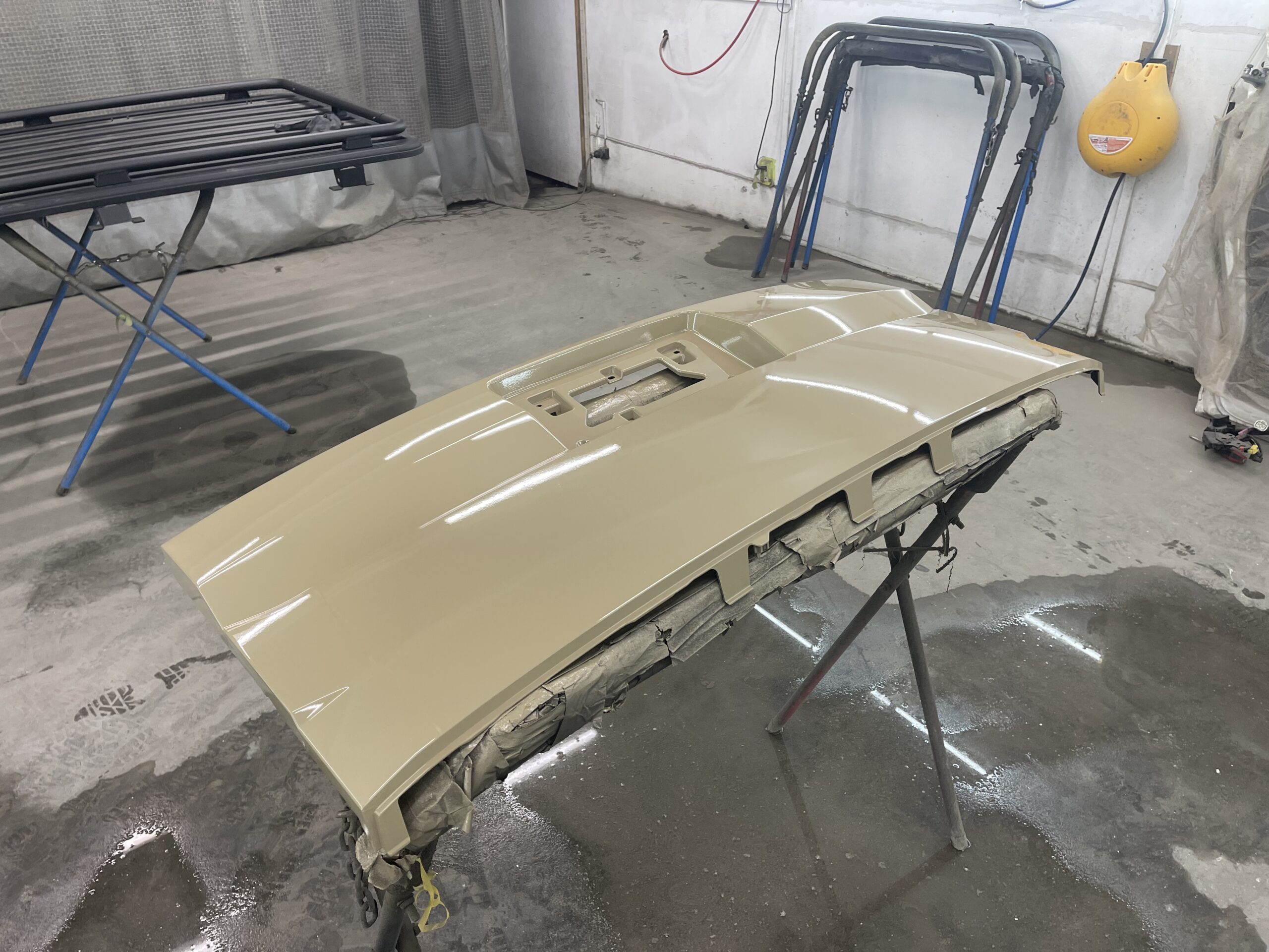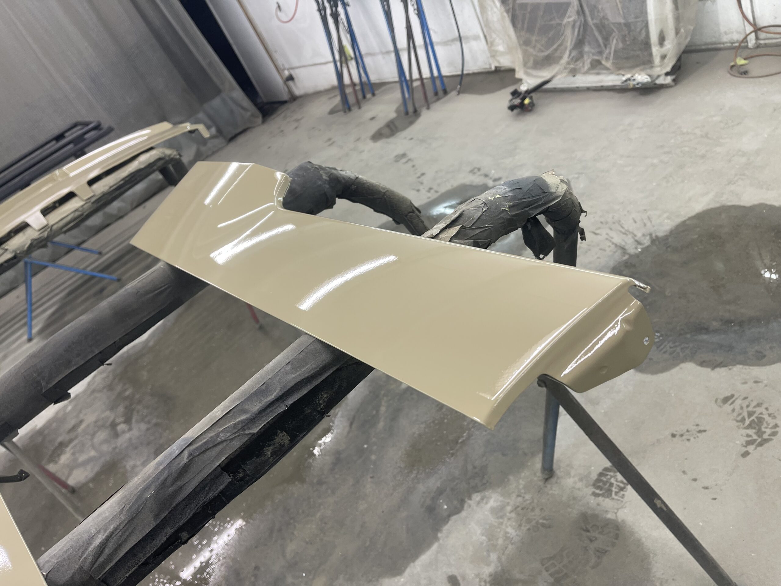 足付け、チッピング部品、ルーフ塗装、ボディ、ドアが完了しており本日は部品の塗装が完了致しました👍