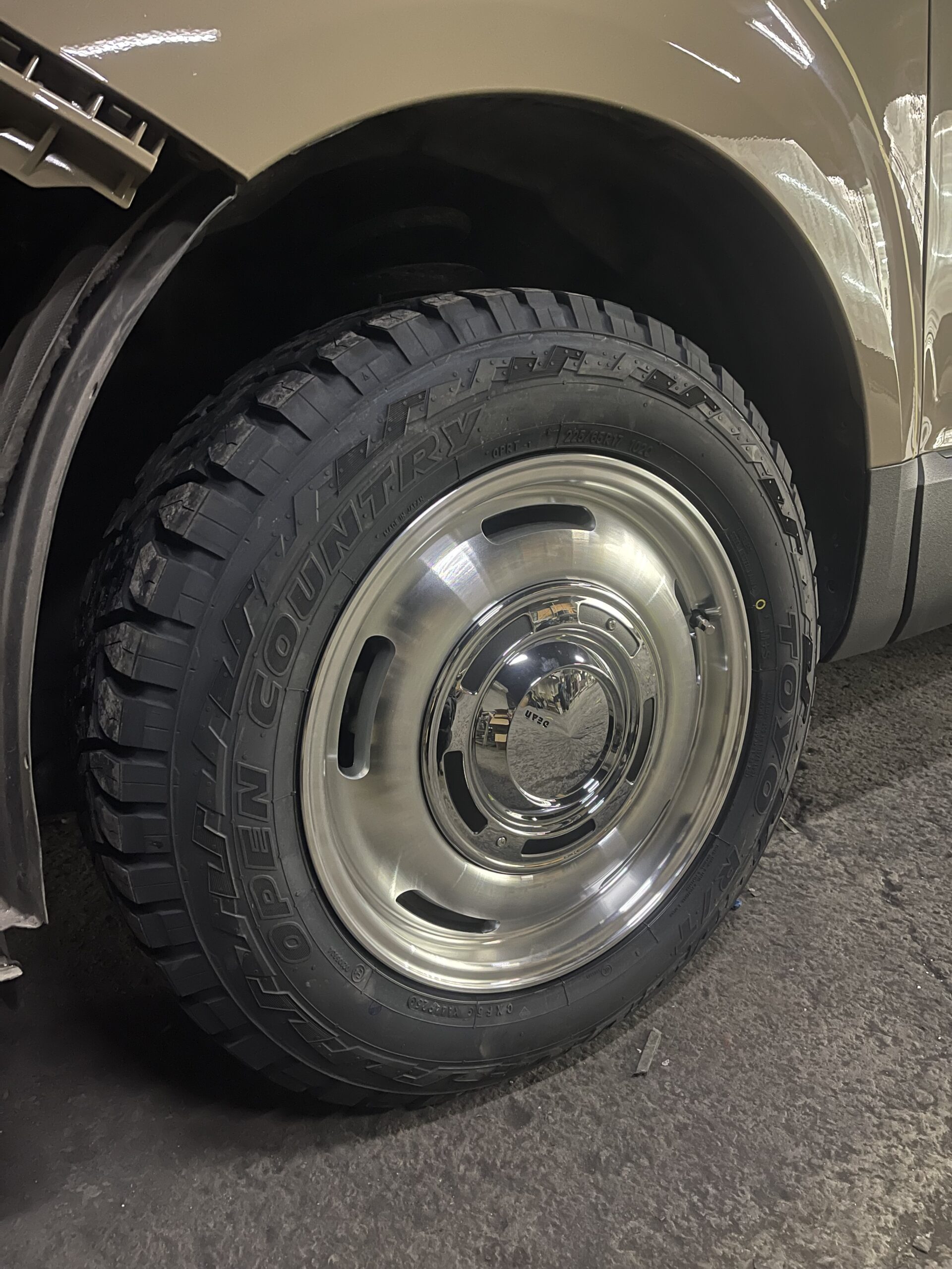 まだバンパーなど組み付け前なのですが、ホイール1つでガラッとイメージが変わり、レトロな味も出しつつタイヤのゴツさでワイルドな雰囲気も出ていて益々アウトドアシーンに似合うと思います🤤